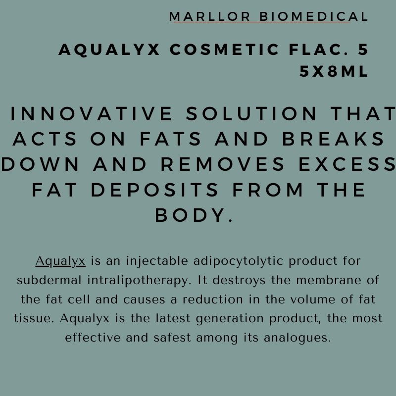Revolutionise fat reduction with Aqualyx®, an innovative solution developed by Marllor Biomedical. This non-invasive, fat-dissolving treatment is crafted with a unique formulation, including deoxycholic acid, a trusted ingredient in fat-dissolving procedures. Offering a safe and effective alternative to traditional liposuction, Aqualyx® targets localised fat deposits in areas like the chin, abdomen, and thighs. It’s a game-changer for aesthetic practitioners, delivering lasting results and redefining the approach to body contouring.