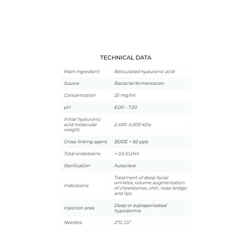 This versatile filler meets a variety of aesthetic needs, such as sculpting or volumizing the upper eyelids, nose, dark circles, cheekbones, lips, facial contours, chin, and jawline. Additionally, it effectively reduces moderate to deep wrinkles, including mentolabial and nasolabial folds, ensuring a youthful and harmonious appearance. Dr. ArJo® Ultra is an essential tool for practitioners aiming to deliver exceptional facial rejuvenation and contouring.