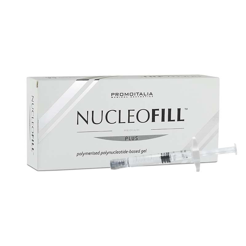 Nucleofill Hair polynucleotide (previously Medium Plus) package includes a prefilled 1 x 2 ml syringe, concentrated at 20 mg/ml of polymerised polynucleotides.
